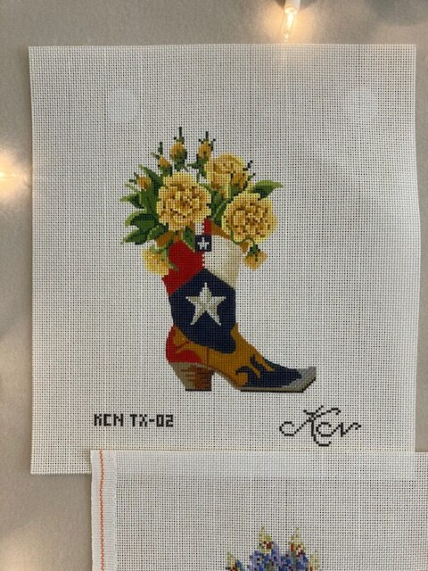 The temps are cooling down here in Austin, Texas getting us excited for fall, football season and (of course) the holidays! We’re hosting an Alexa Needlepoint Designs Trunk Show for a couple more weeks here at The Needle Works. Enjoy 20% off darling stocking canvases to help strike up the